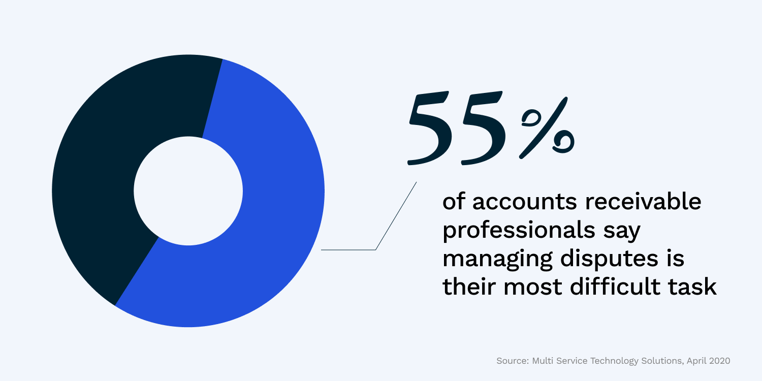 In fact, 55% of accounts receivable professionals now cite dispute management as the most difficult task in the entire collections cycle.
