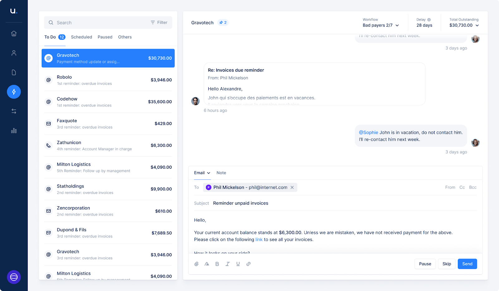 - Intuitive follow-up processes allow you to handle high-priority invoices first