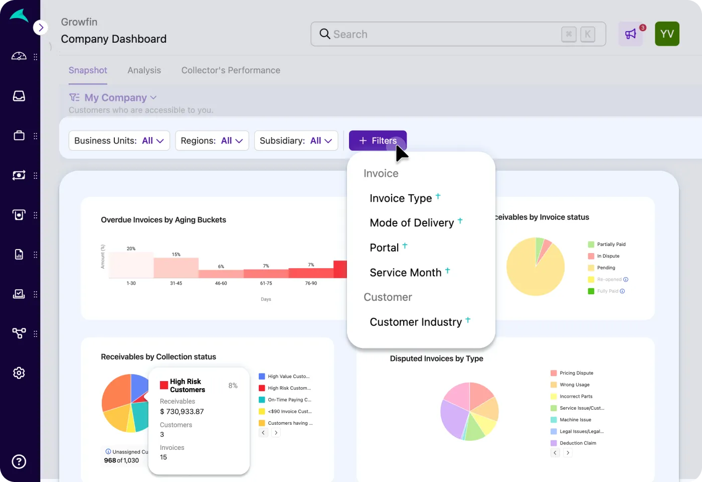 Growfin is an AR management software that specializes in helping finance teams eliminate manual AR across billing, collections, revenue recognition, and reporting. Growfin also syncs with your tech stack to ensure all your data is consolidated across your channels.