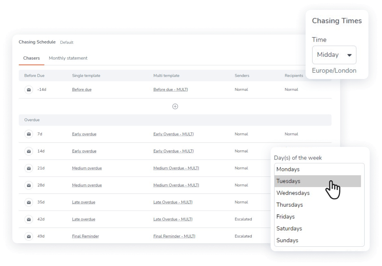 - Multi-channel Automated Chasing: Beyond email, Chaser also supports SMS reminders, postal letters, and automated debtor calls built into your workflow.