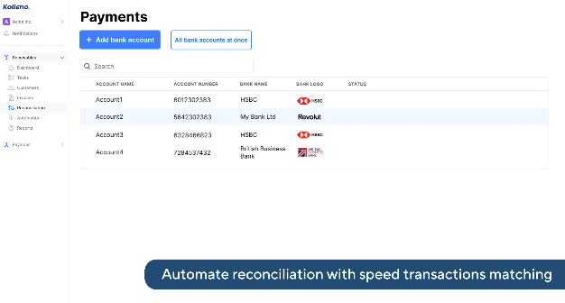 - Automated transaction matching that aligns payments with invoices or ledger entries