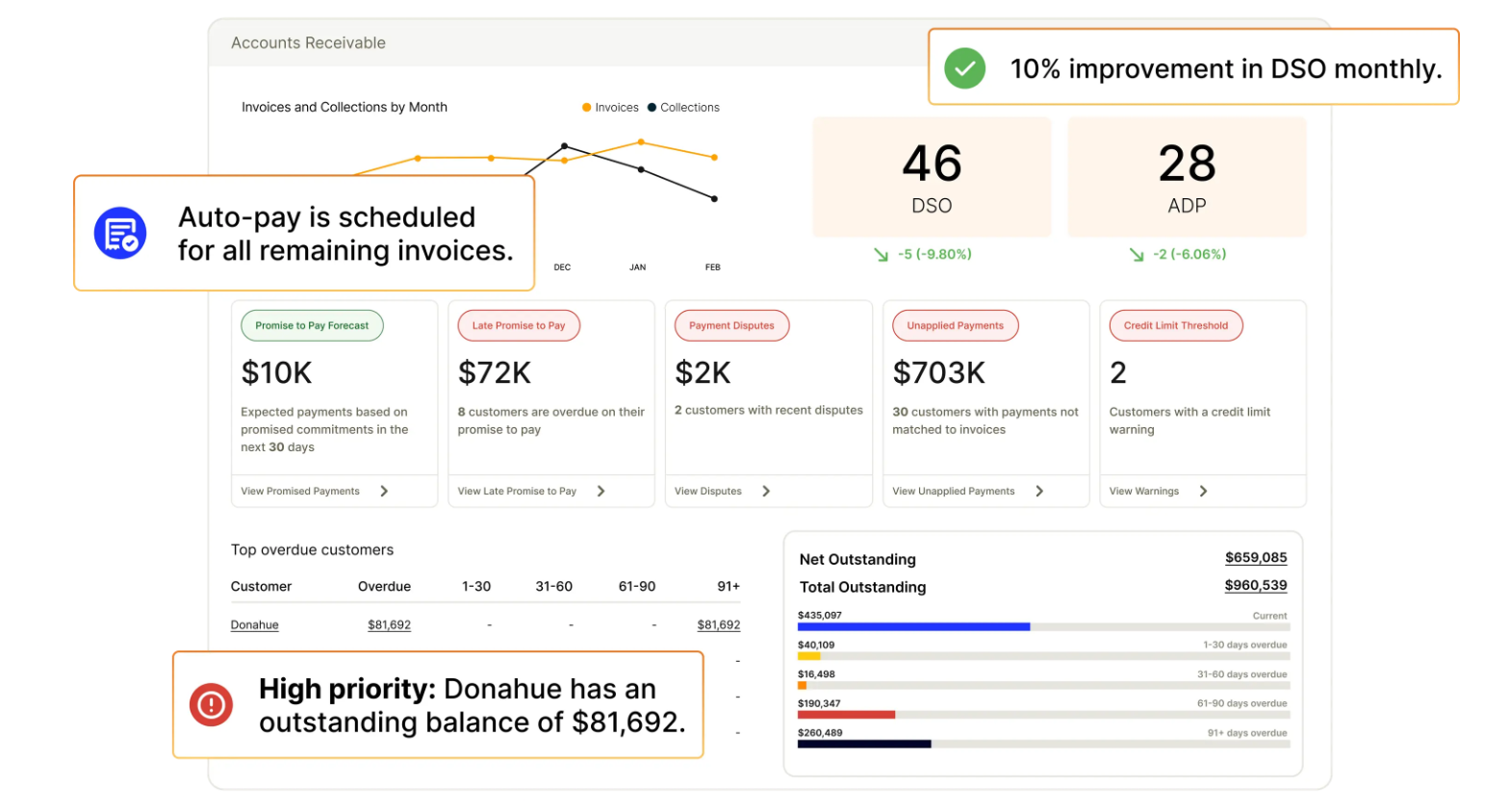 - Strong focus on collections and overdue invoice management