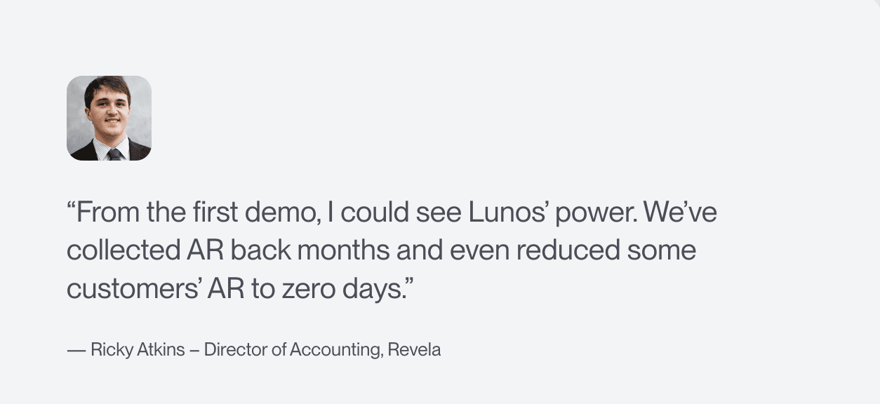 Teams using Lunos report approximately 75% reduction in AR workload and significant DSO improvement within weeks of implementation.
