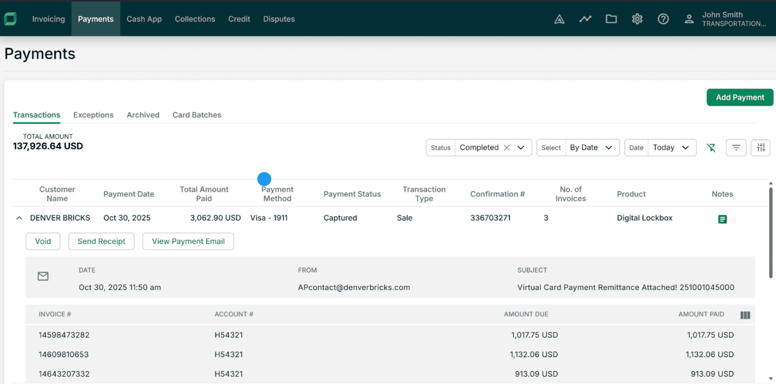 Billtrust excels at payment processing with customer portals, multiple payment methods, and easy online payments. It streamlines cash collection, making it simple for customers to pay. While effective for straightforward transactions, it isn’t as advanced as HighRadius for complex payment matching or processing large volumes of complicated remittances.